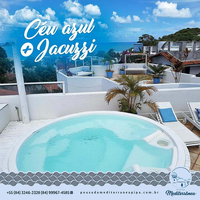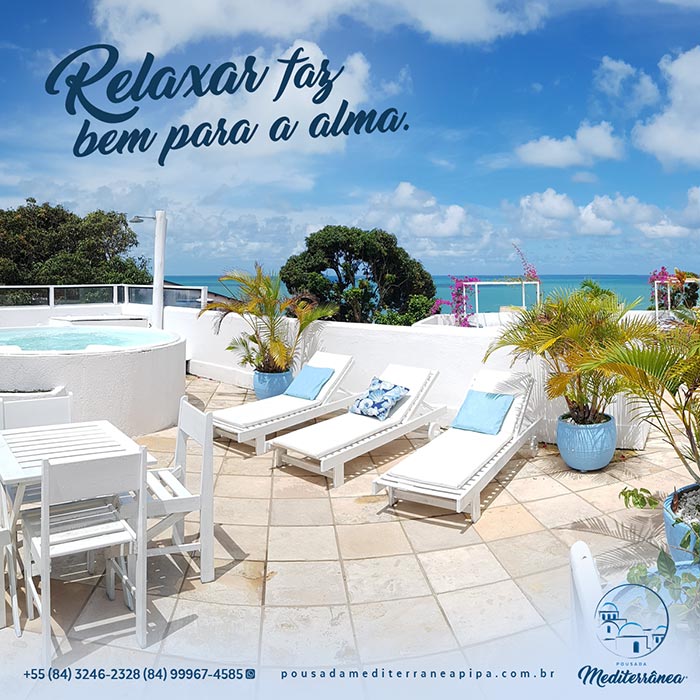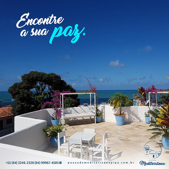 A Pousada Mediterrânea, localizada na praia de Pipa, tem uma proposta diferenciada que leva seus clientes a viverem uma experiência de relaxamento e fuga do cotidiano em um ambiente inspirado na região do Mediterrâneo.