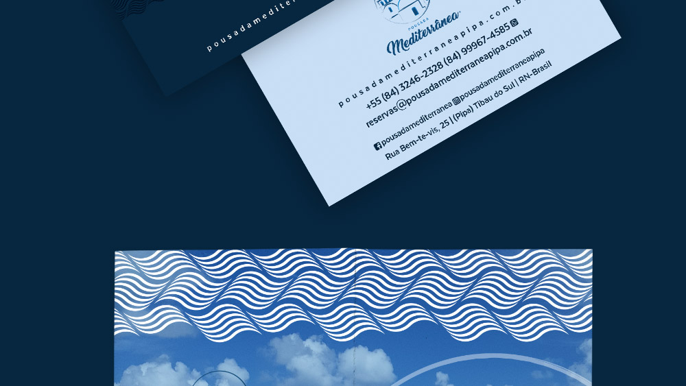 As cores utilizadas na marca são uma referência aos tons do mar mediterrâneo, mas também da praia de Pipa. Assim, a marca une dois fortes elementos da empresa, que são referentes a sua estrutura física e localização em si. Desse modo, tanto o azul quanto o branco transmitem confiabilidade, relaxamento e leveza.